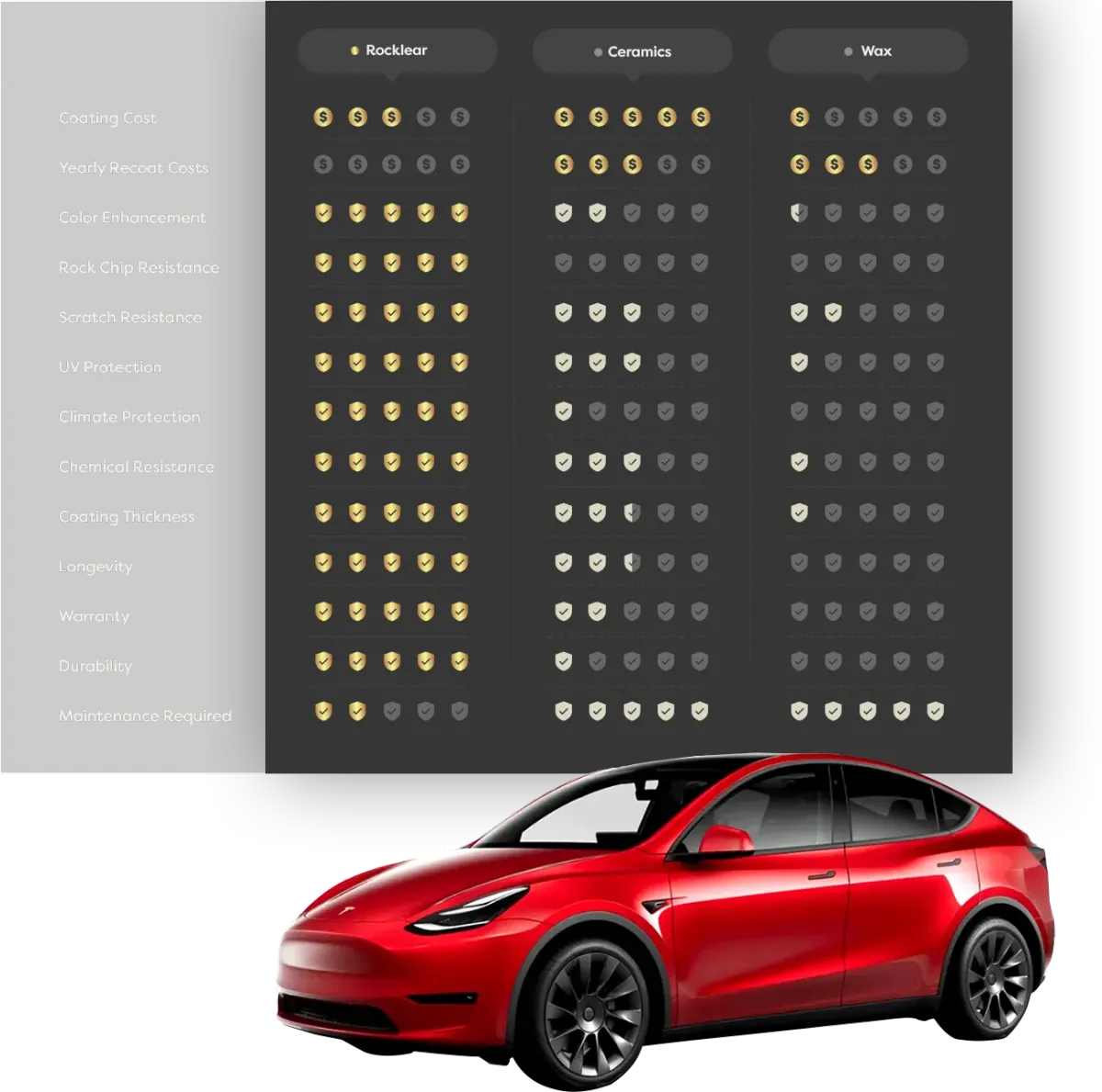 Icon Rocklear being 75x the surface strength of the leading competitor product (Ceramics) means it can withstand parking lot dings, key scratches, rock chips and other damages at a much higher level like never before.
